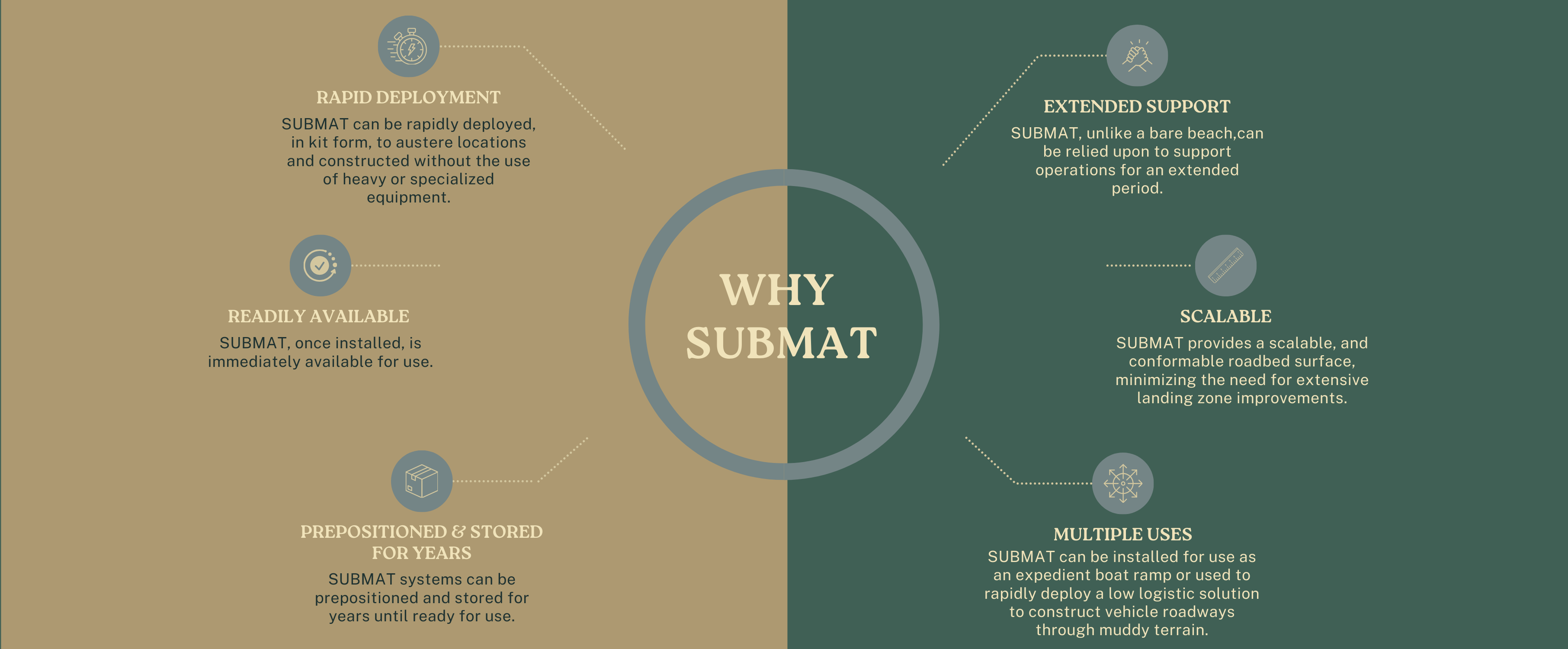 “SUBMAT is a force multiplier by removing the need for beach reset and reducing offload time by days.”